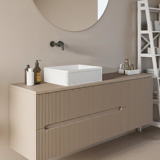 Mobile bagno 120x46 Urbino cannettato tortora opaco con anta e lavabo
