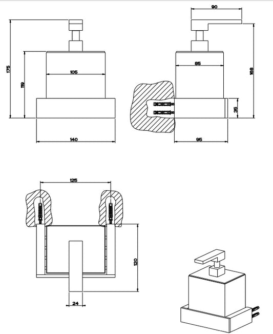 Dispenser portasapone a Muro Nero Cromo Rettangolo 20814 Gessi