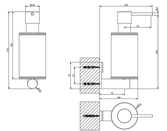 New Line M3 portasapone a muro In vetro acidato e Acciaio Inox Nero Opaco