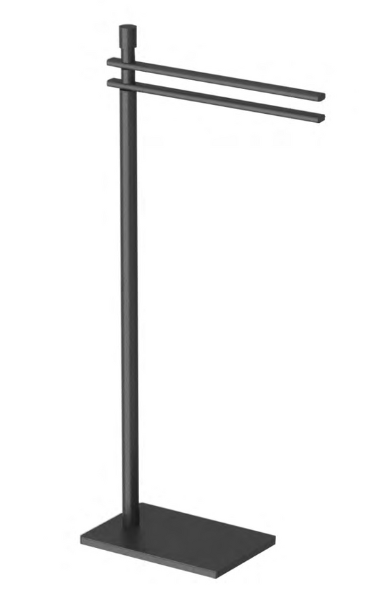 Piantana porta salviette a due posizioni con base ultrapiatta in acciaio nero opaco