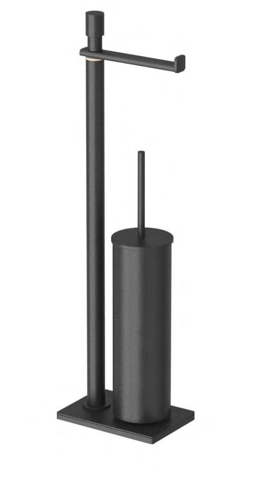 Piantana wc con portarotolo e portascopino con base ultraflat in acciaio nero opaco