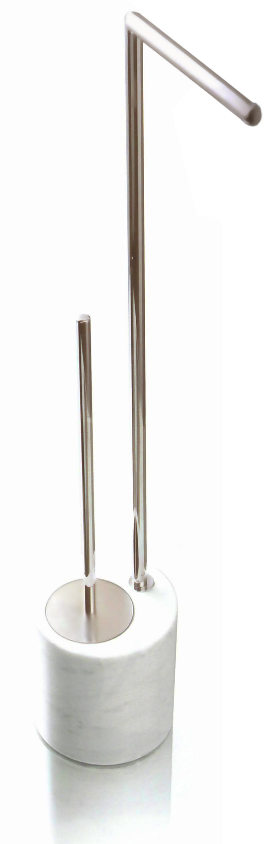 Bertocci Carrarino Piantana Porta Rotolo E Scopino Nichel Matt e Base In Marmo Carrara