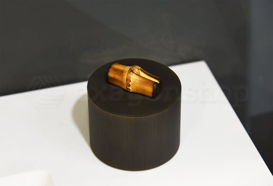 Porta Scopino Rotondo Da Appoggio Industrial Bronze Con Manico In Bamboo Guccio Bertocci