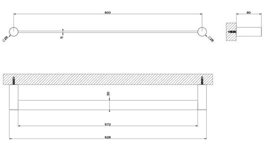 Porta Salviette 30 cm a Parete black metal brushed PVD 707 Inciso 58497 Gessi