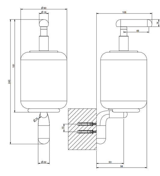 Dispenser sapone liquido a muro Nero Satinato Industrias Architect 2353603 Cosmic