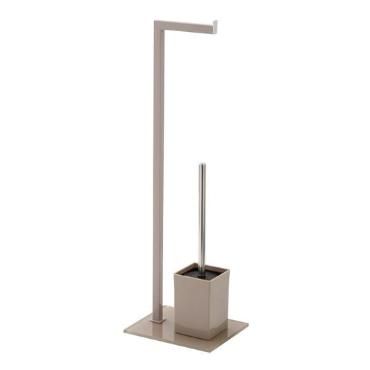 Piantana portarotolo porta scopino tortora e acciaio cromato con base in vetro