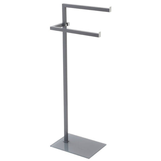 Piantana Portasciugamani doppio con base in vetro temperato e acciaio grigio 810011