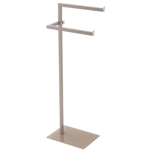 Piantana Portasciugamani doppio con base in vetro temperato e acciaio Tortora 810012