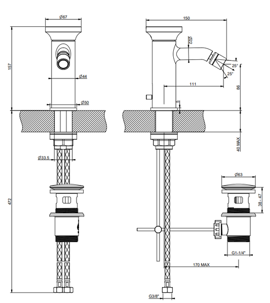 Gessi Miscelatore bidet con scarico brass brushed pvd diamantato 70607