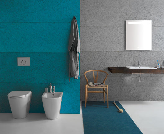 Globo Genesis Coppia Sanitari filoparete Vaso senza brida E Bidet A Pavimento Sedile Rallentato Smoke