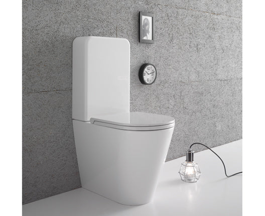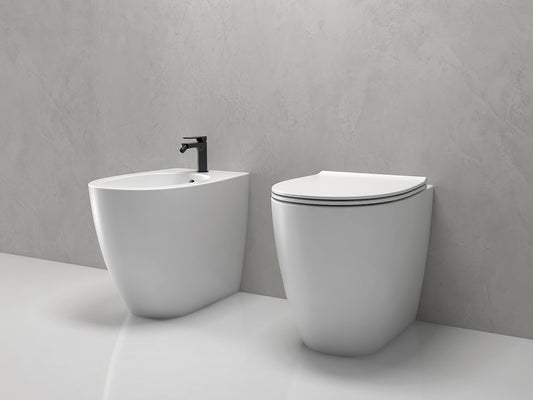 Globo Genesis coppia sanitari a pavimento vaso senza brida con sedile rallentato e bidet a filo parete smoke
