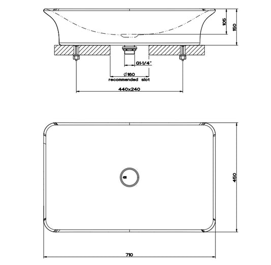 Lavabo lavamani 25x45 scarico a destra In Flumood Simplomani versione A Antonio Lupi