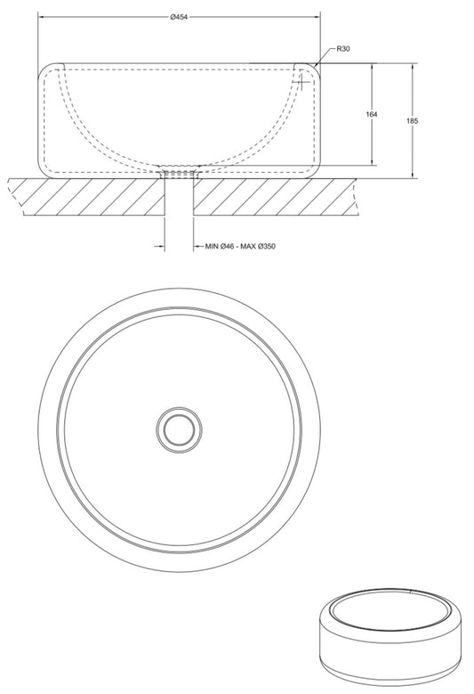 Lavabo tondo 33 cm slim da appoggio In Ceramica Bianco