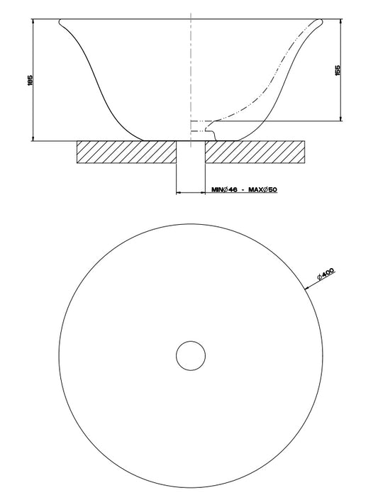 Lavabo tondo ciotola da Appoggio 40 Cm In Gres Bianco lucido Gessi Goccia 39123