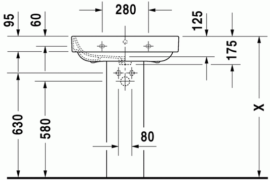 Lavabo Monoforo 65x49 per colonna Con Troppopieno e copriforo cromo Bianco Happy D2 2316650000 Duravit