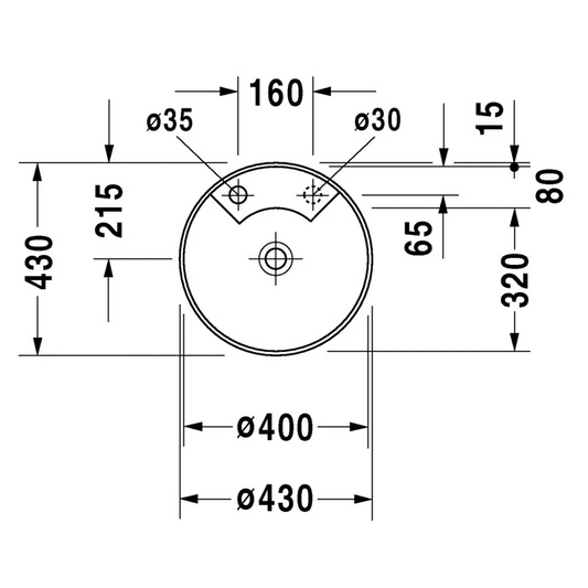 Lavabo tondo 40 cm da Incasso sottopiano Monoforo Bianco senza rubinetteria Architec 046240 Duravit