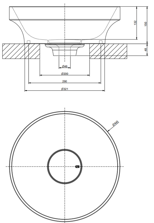 Lavabo da appoggio 445 mm senza troppopieno in cristalplant 521 bianco Origini 66601 Gessi