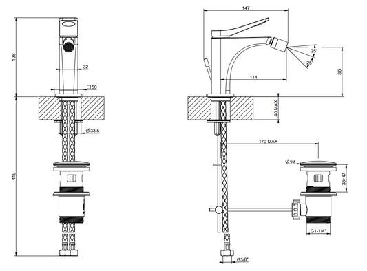 Miscelatore bidet monocomando con flessibili di collegamento cromo rilievo 59007 gessi