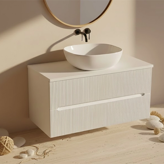 Mobile bagno bianco opaco 90x46 cannettato Urbino con ciotola appoggio in ceramica