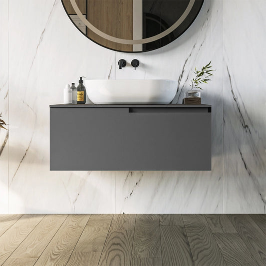 Mobile bagno grigio scuro 100x45 Mango due cassetti soft close con lavabo tondo da appoggio in ceramica lucida