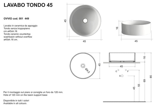 In offertaNic Ovvio Lavabo Tondo 45 cm Bianco Matt