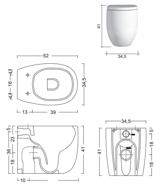 Nic Semplice Wc Sospeso 53x35x29 Bianco Lucido