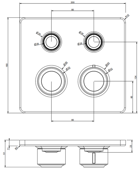 Parti Esterne Doccia Termostatico 2 Uscite senza parte incasso Quadro 35004 Gessi