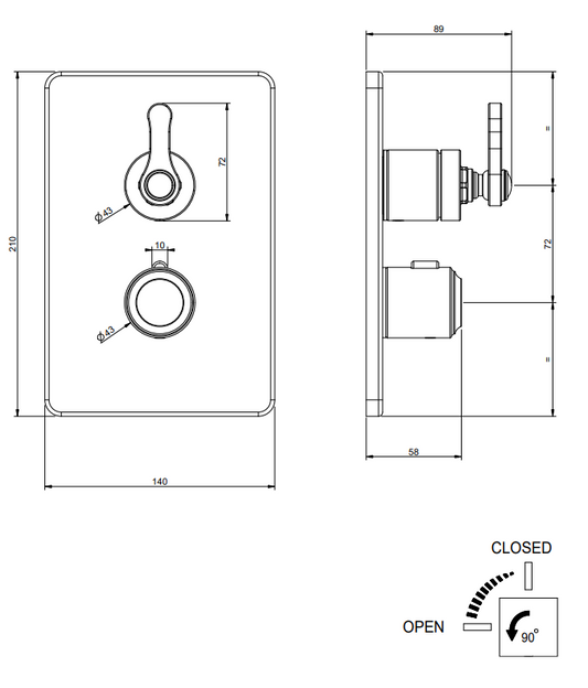 Parte Esterna Miscelatore Termostatico Doccia A Parete 3 Vie senza parte incasso Cromo Rettangolo 20190 Gessi