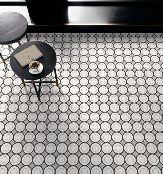 Pavimento rivestimento 20x20 decoro in gres porcellanato 10 mm talco Ceramiche Ragno Ottocento 00RKMQ24