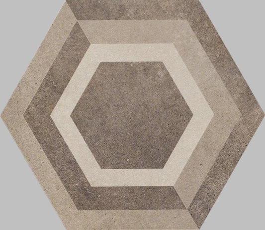 Pavimento rivestimento 21x18,2 esagonale effetto cemento 9,5 mm in gres porcellanato tabacco Ceramiche Ragno Rewind 00R4CQ16