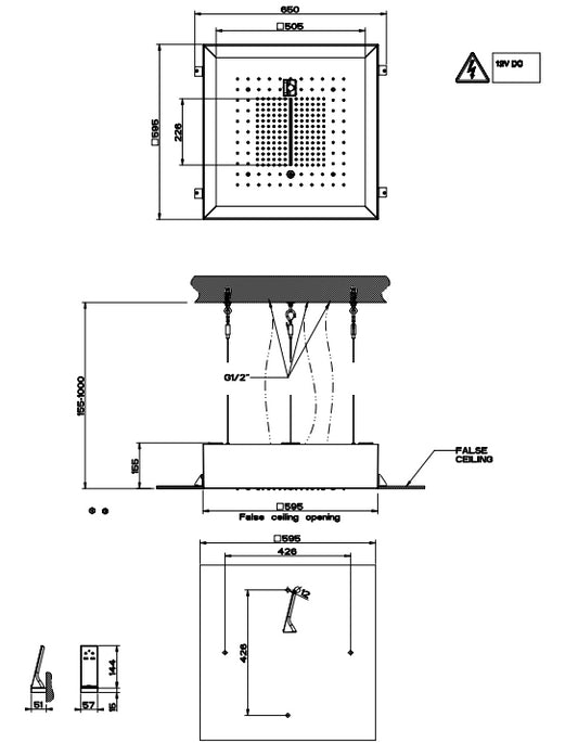 Soffione Multifunzione 50x50 a incasso Con Funzione Pioggia Cascata Misto e Cromoterapia Bianco Afilo 57509 Gessi