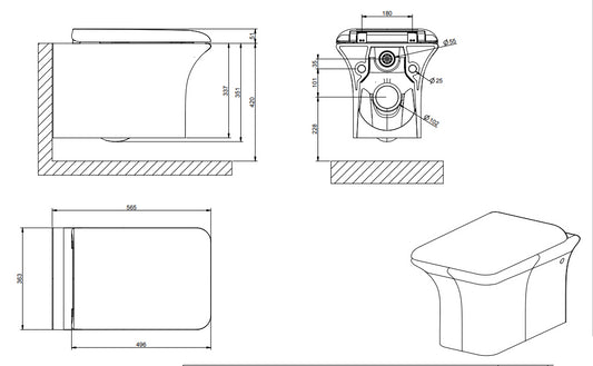Wc Sospeso A Parete 6 litri In Ceramica Bianco lucido Ispa 42113 Gessi