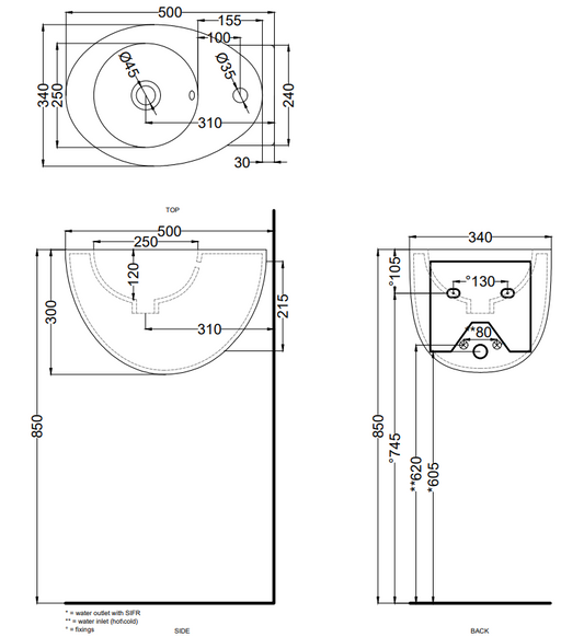 Cielo Le Giare lavabo sospeso 34x50 monoforo con troppopieno in ceramica lavagna