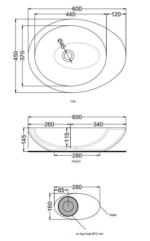 Cielo Le Giare lavabo da appoggio 60x45 senza troppopieno nero marquinia