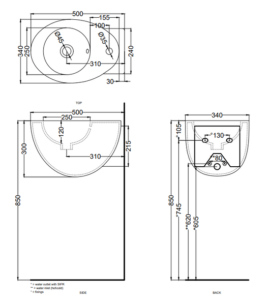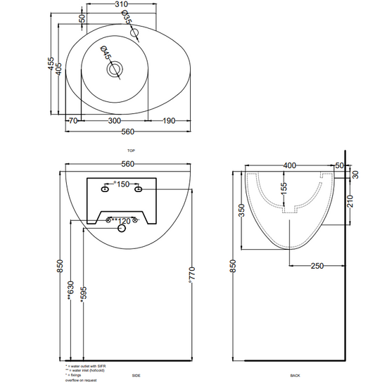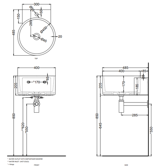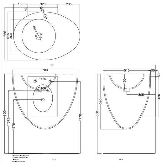 Cielo Sella Lavabo 40x48 Monoforo sospeso Senza Troppopieno In Ceramica basalto