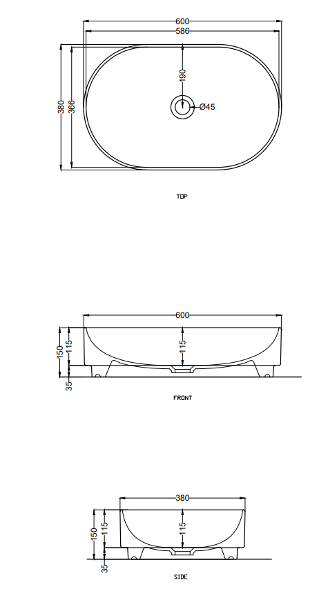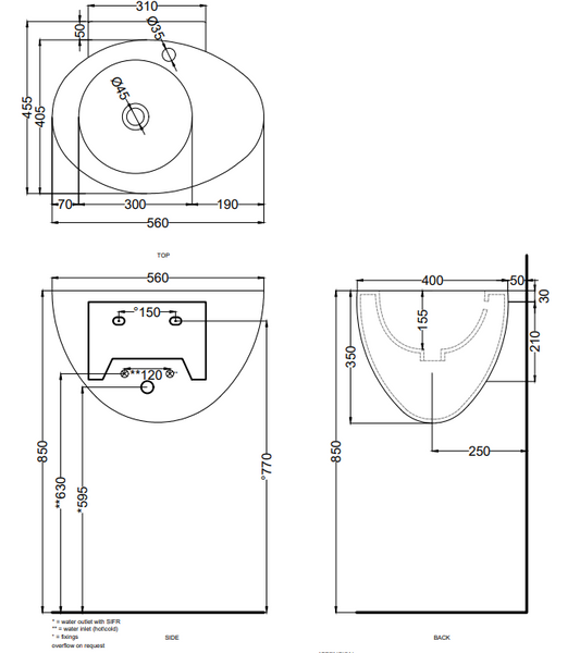 Cielo Mare lavabo 60x38 da appoggio senza troppopieno in ceramica bianco lucido