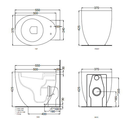 Cielo Le Giare Wc sospeso completo di fissaggio senza sedile in ceramica lavagna