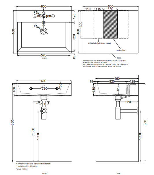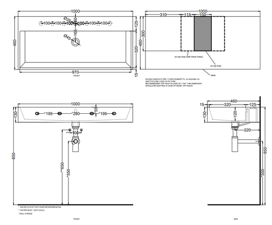 Cielo Smile Lavabo monoforo 100x46 sospeso o da appoggio con troppopieno in ceramica bianco lucido