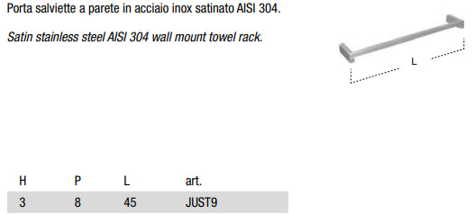 Antonio Lupi Just9 Portasalviette a parete 45 cm in acciaio Inox satinato