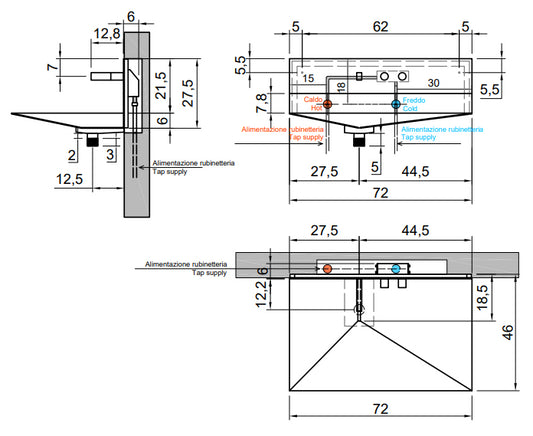 Antonio Lupi Lavandino Lavabo A Parete 27,5x44,5x72 cm Con Rubinetto integrato in acciaio inox
