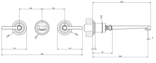 Gessi 65090 Parte esterna lavabo a parete bocca lunga parte incasso non inclusa cromo
