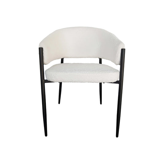 Sedia con braccioli in tessuto boucle imbottito bianco