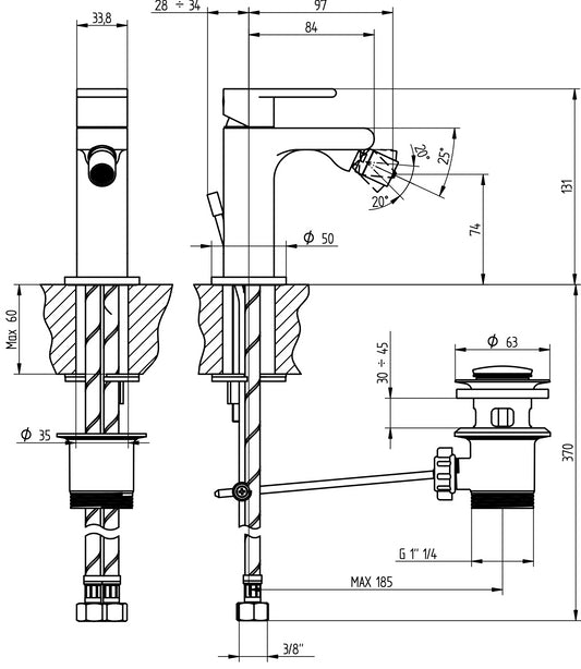 Bellosta Jeans Miscelatore Bidet Monoforo Cromato 01-4807