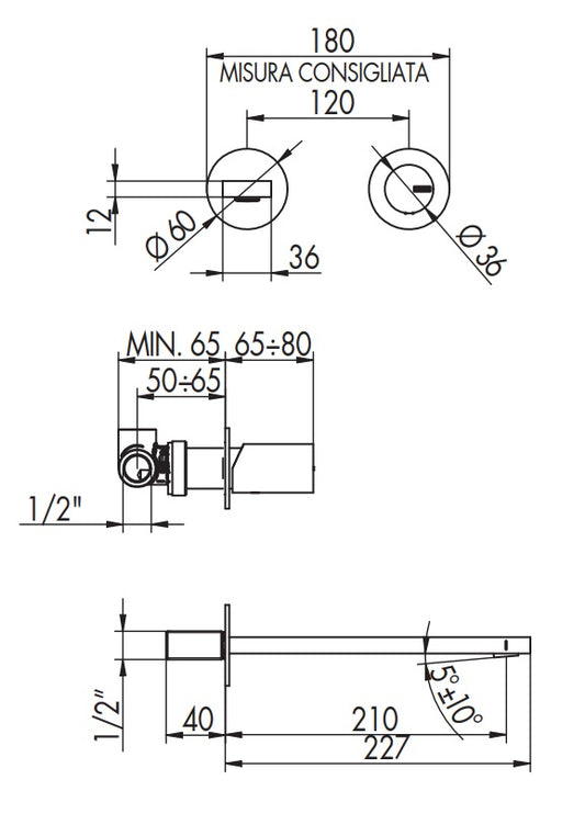 Bellosta Ludo Miscelatore Lavabo Da Parete Bocca 210 Mm senza parte incasso Cromo