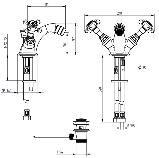 Bellosta Edward Gruppo Bidet Monoforo Bronzo Opaco 72-0807/2/C