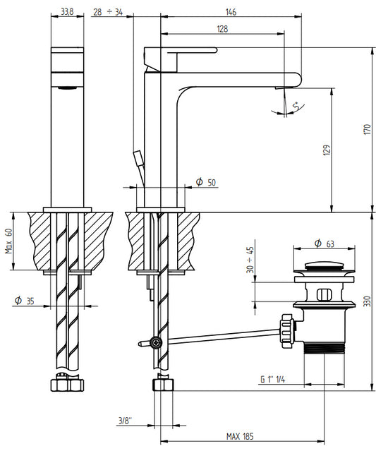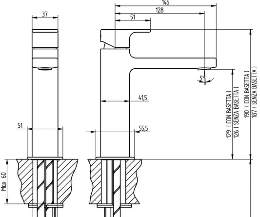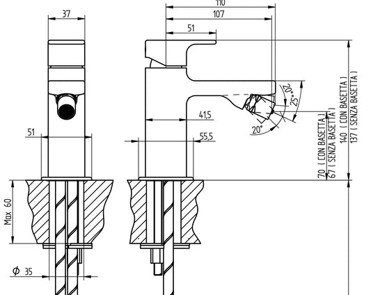 Bellosta Miscelatore Lavabo Prolungato senza scarico Cromo Micheli Leva 5805/P/SNL