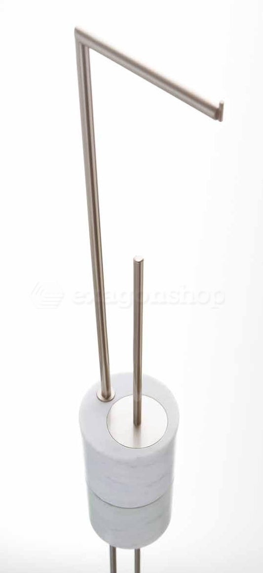 Bertocci Carrarino Piantana Porta Rotolo E Scopino Nichel Matt e Base In Marmo