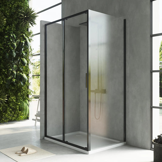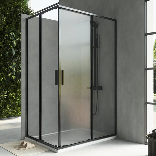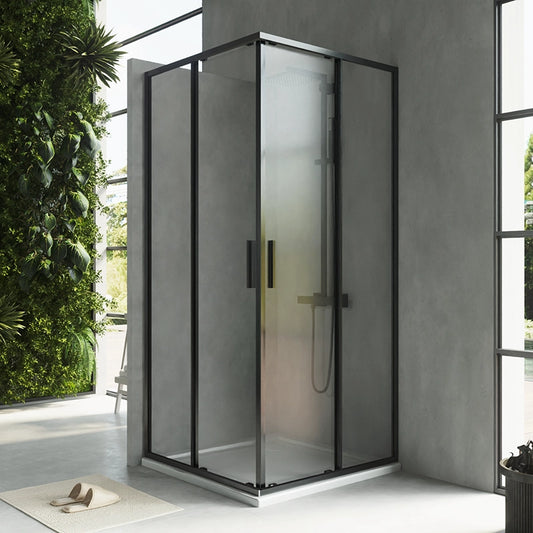 Box doccia 90x90 Rio doppio scorrevole vetro 6 mm trasparente H 195 nero
