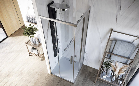 I box doccia scorrevoli, con porta box doccia scorrevole e i modelli con sistema scorrevole ad angolo per box doccia, sono ideali per ottimizzare lo spazio, poiché le ante scorrono lungo guide senza occupare area esterna.