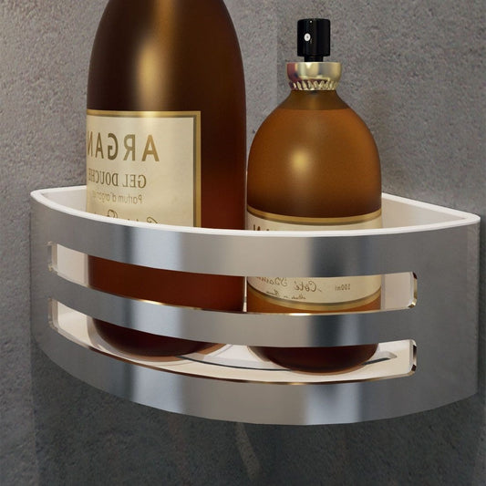 Cestino contenitore angolare a muro in metallo cromato e vaschetta estraibile bianco